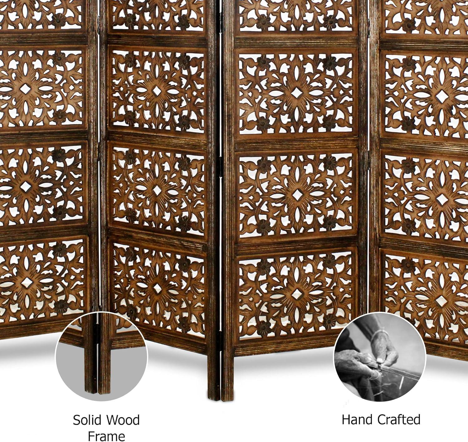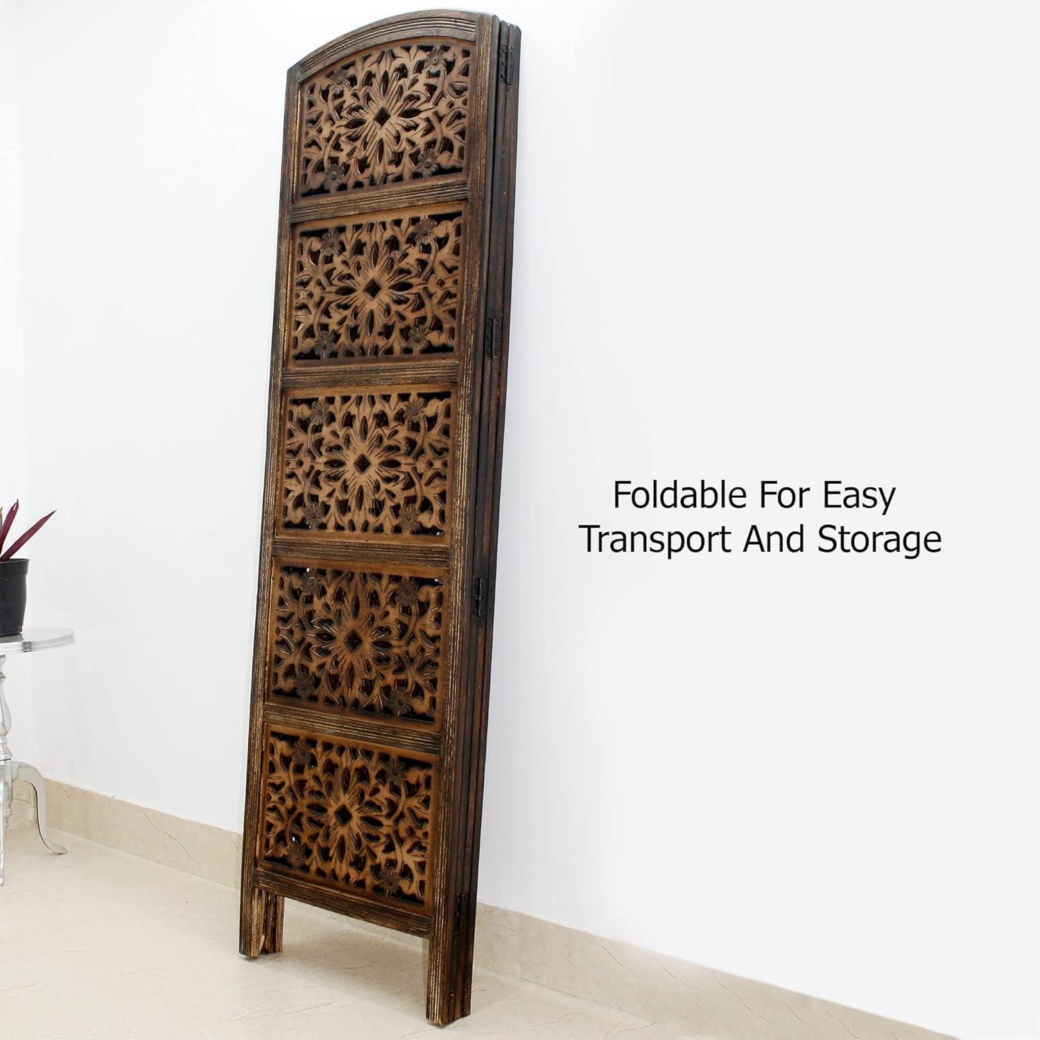 Room Divider Wood Floor Screen Partition – Sari Patchwork Fabric on Antique Brown Wood Frame – Three Folding Panels 60×72 – Free Standing Portable Small Spaces Boho Hand Crafted Screen – COTTON CRAFT(Rajasthan – Antique Brown)