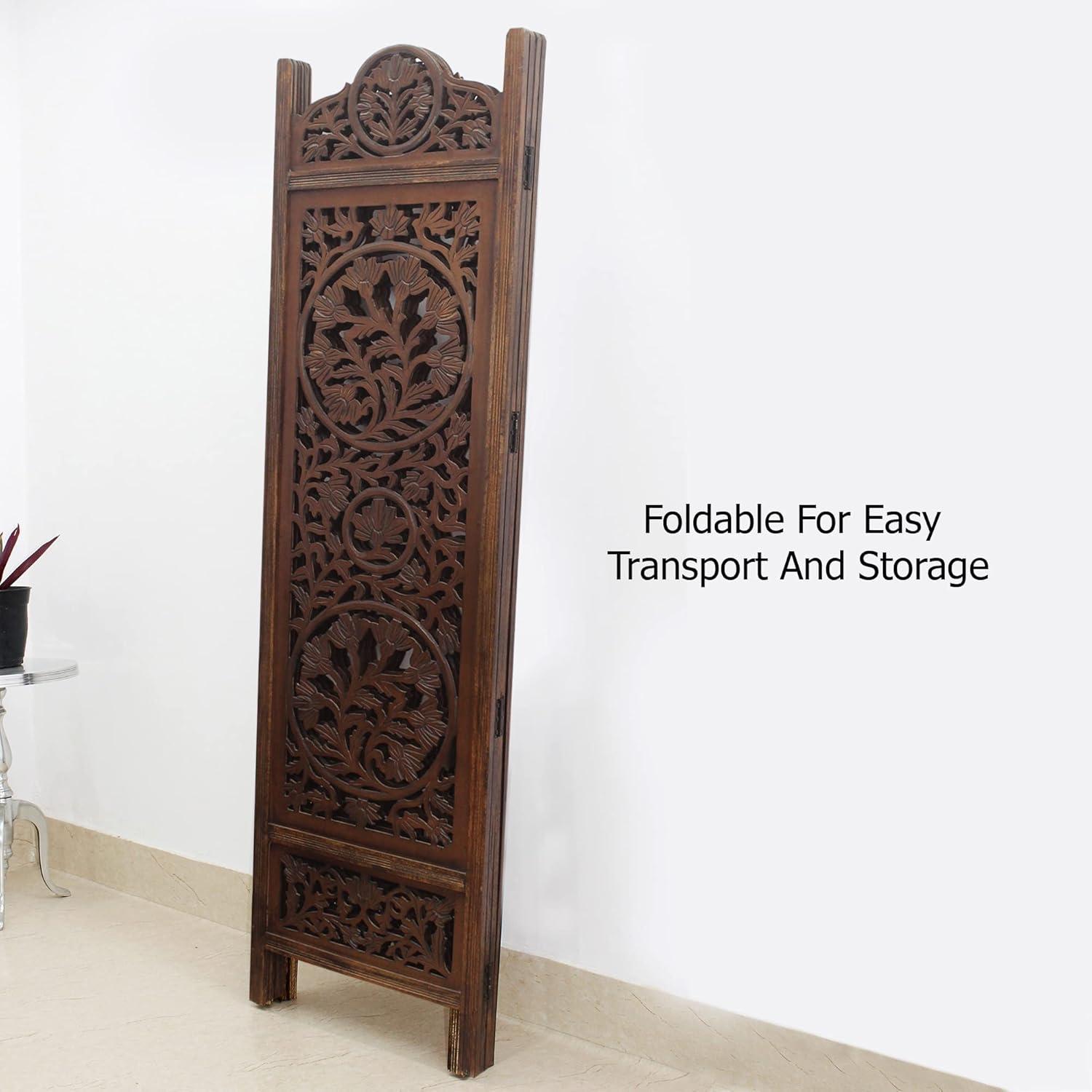 Room Divider Wood Floor Screen Partition – Sari Patchwork Fabric on Antique Brown Wood Frame – Three Folding Panels 60×72 – Free Standing Portable Small Spaces Boho Hand Crafted Screen – COTTON CRAFT(Kamal – Antique Brown)