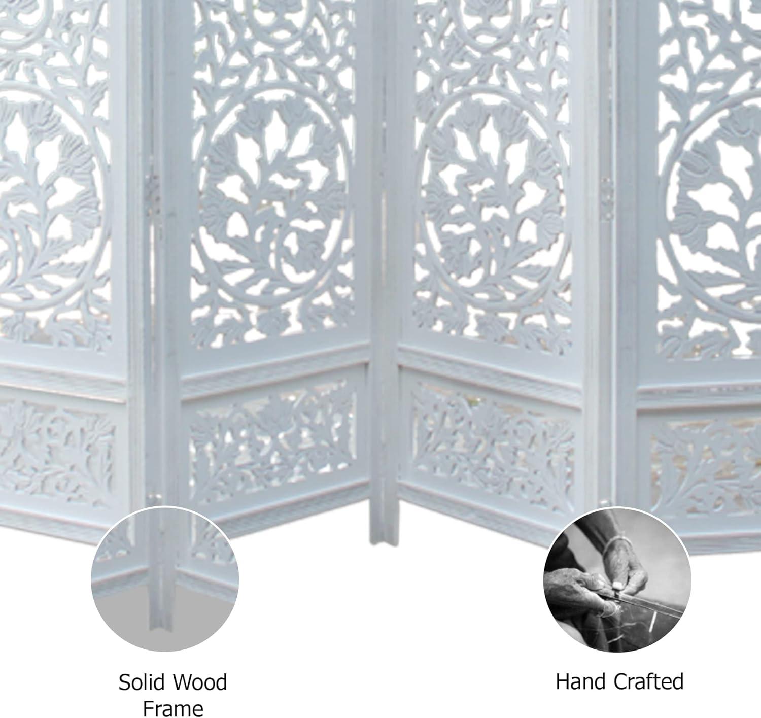 VERSATILE: The versatility of this floor screen is outstanding. Fully extend to get the full benefit of its privacy or fold up smaller to use and hide clutter. Don't worry about which side of the floor screen you are facing, both are decorative, making it beautiful from either side. This charming design features 8 folding hinges to ensure the screen can be used in smaller and larger spaces alike, striking a 60″ W x 72″ H silhouette when fully expanded.